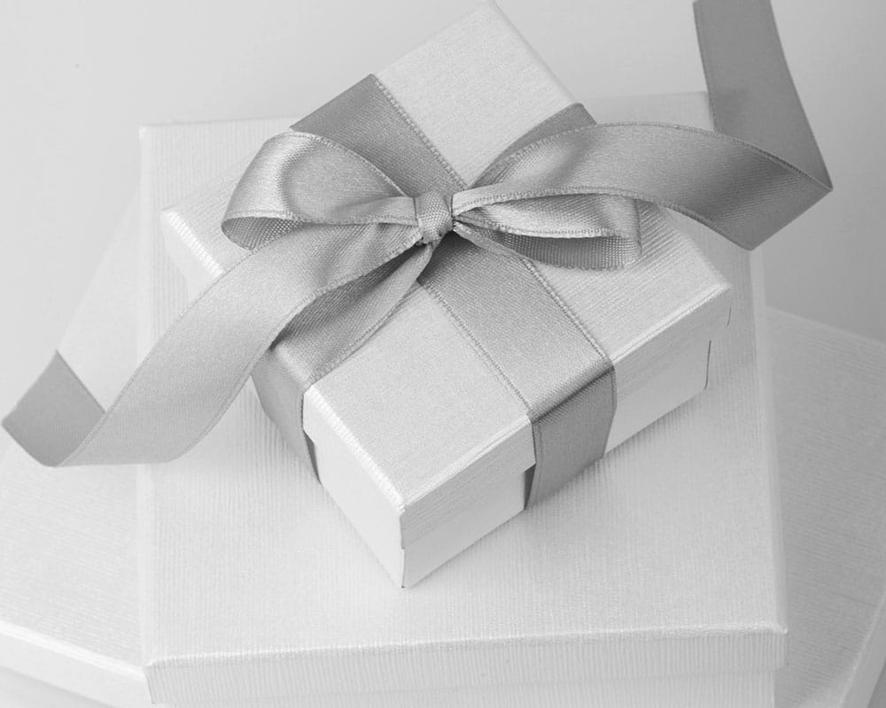 完成したアイテムはすべてボックスにおリボンをかけてお届けいたします。